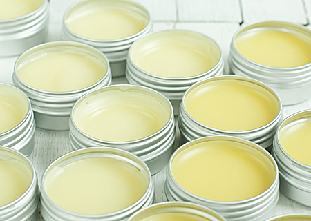 バームクリームベースは、溶かして固めるだけで使える。お好みのオイルや香りを足してリップクリームやリップグロス、練香、軟膏のベースとしてお使い頂けます。これだけの成分を無駄なく配合できるのはベースならではですね。