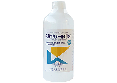 植物性発酵エタノール無水(無水アルコール)は、99.5%以上の植物由来(サトウキビ)の発酵エタノールです。手作り化粧品、手作り化粧水、植物成分の抽出、香料の薄め液などにお使い頂けます。