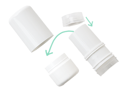 下を回すと中身がでてくるタイプです。面が緩やかなカーブでフェイスにフィットしやすい。その他、ボディバーやデオドラントバー、日焼け止めバー、虫除けバーム等にも使いやすいチューブスティック容器です。